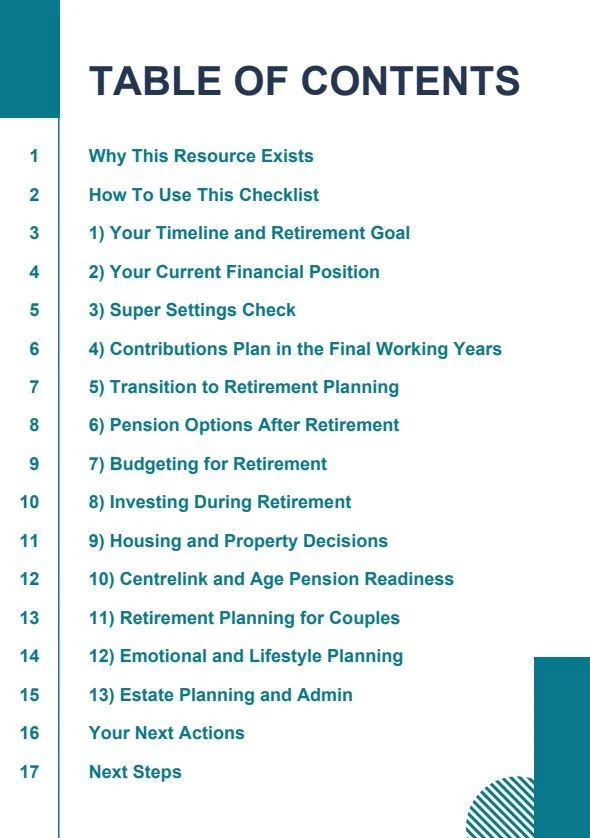Most retirement guides focus on the numbers, but the real stress comes from the gaps. This checklist exists to pull those moving parts into one clear place, so you can spot what you’ve already handled, what you’ve missed, and what needs attention.